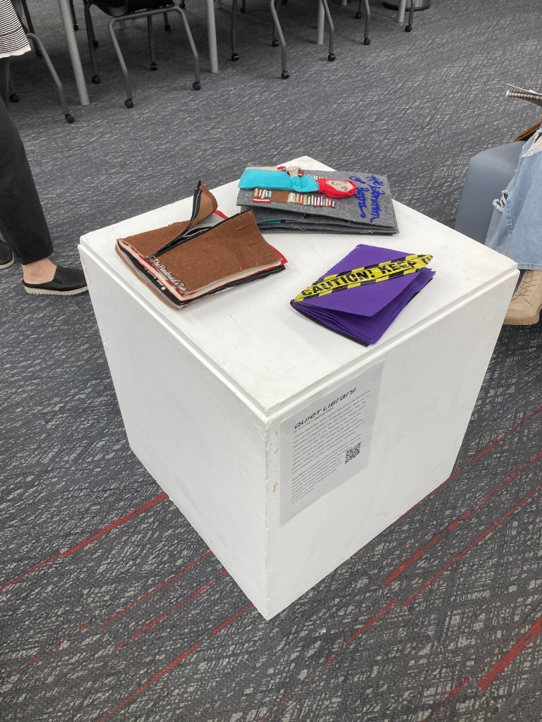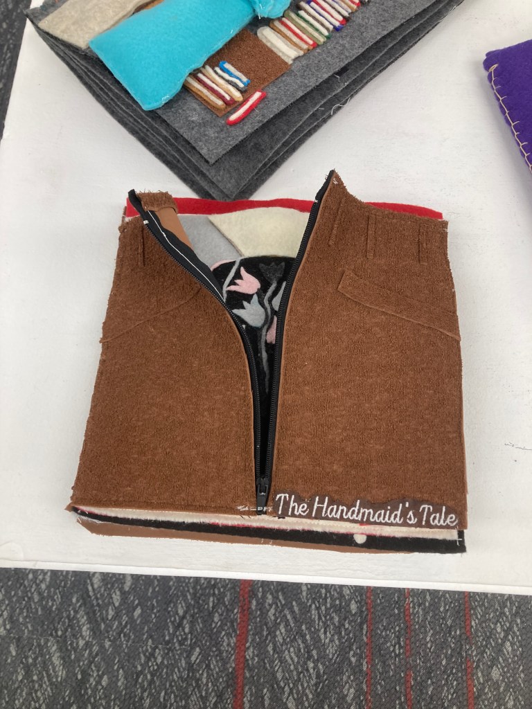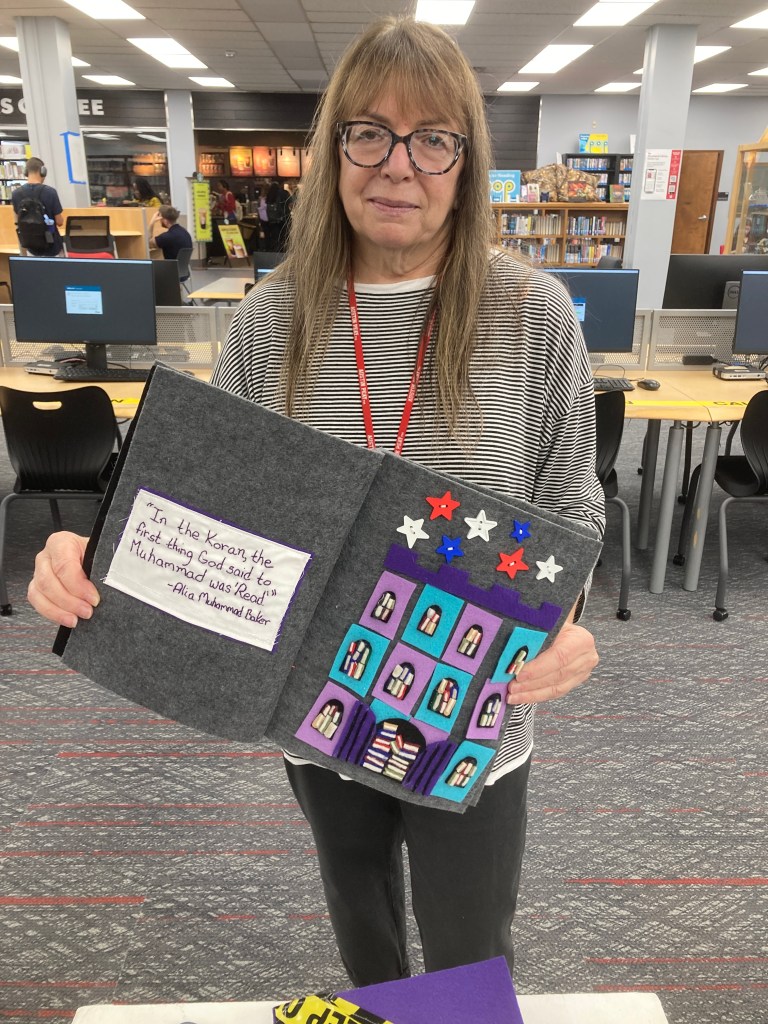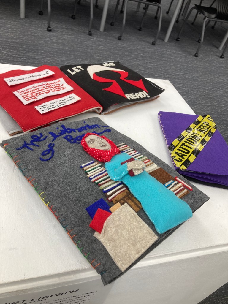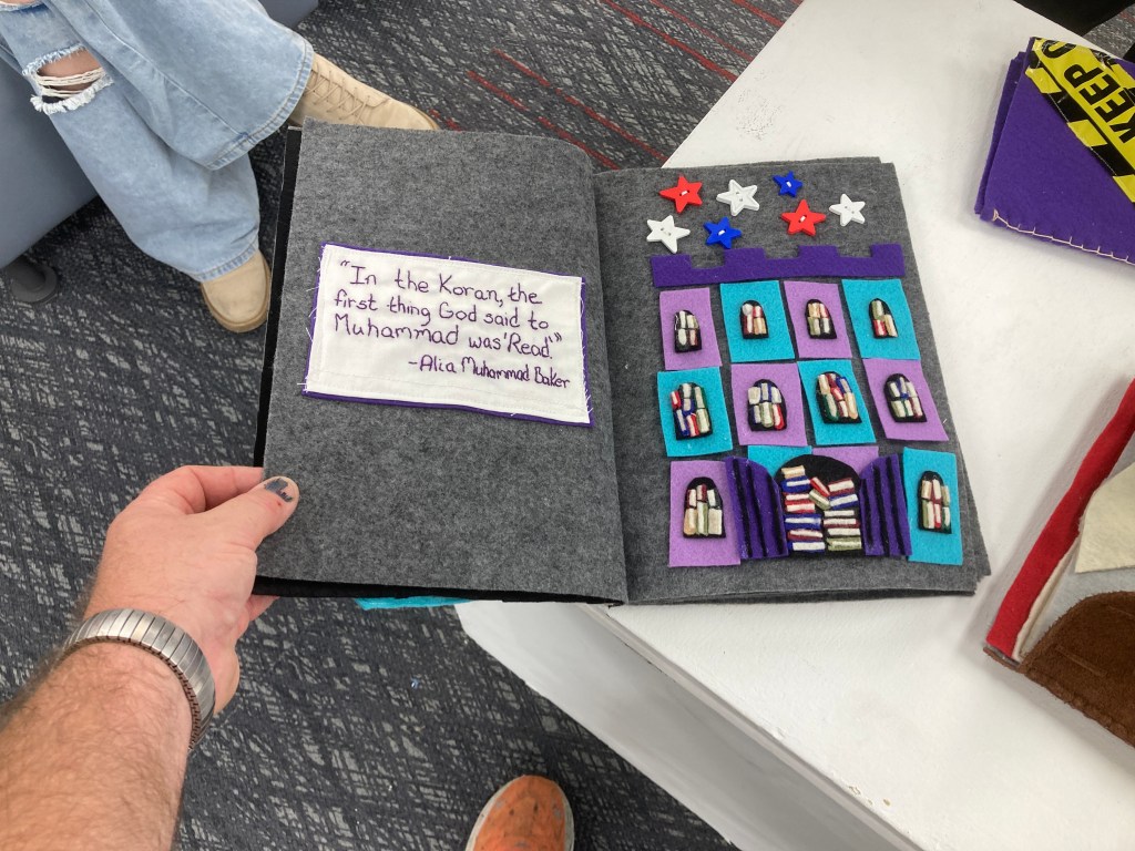 I create interactive “quiet books” that delve into the themes and nuances of banned or challenged books. Each one, at 9×9 inches, brings stories like The Handmaid’s Tale, The Librarian of Basra: A True Story from Iraq, Drama, and A Child Called It: One Child’s Courage to Survive to the viewer through my eyes. Through tactile and visual elements, I try to engage viewers in a thought-provoking journey, offering a unique way to experience and reflect on these important, and often controversial, narratives.